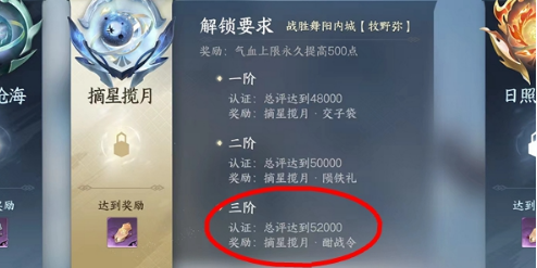 3、进入摘星揽月部分后,玩家需挑战舞阳城内城的【牧野弥】副本,并确保总评分达到52000分以上。成功达成后,系统将奖励「摘星揽月·酣战令」。这一挑战难度较高,推荐玩家组队协作以提升效率。