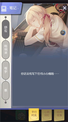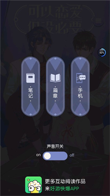 打开游戏可见"开始阅读"选项及右上栏目条。栏目条包含"笔记""篇章""手机"和声音开关。"笔记"页面相当于日记本,记录角色心情,新账号初始为空。下方黄色便签有"心跳回忆"和"结局收集"。"心跳回忆"记录每个角色的心动瞬间,顶部显示收集数,底部可选角色。"结局收集"暗示九种结局,每次游戏结果可能不同。返回选择"篇章",可查看全部章节,了解基本情节。完成章节后需存档避免进度丢失。基本了解后返回主页面进入游戏,新玩家有自动播放的新手引导,后续情节需手动点击或自动播放。新环节需上滑屏幕推进故事,形式新颖如漫画。完成首章后,更多精彩等待探索。
